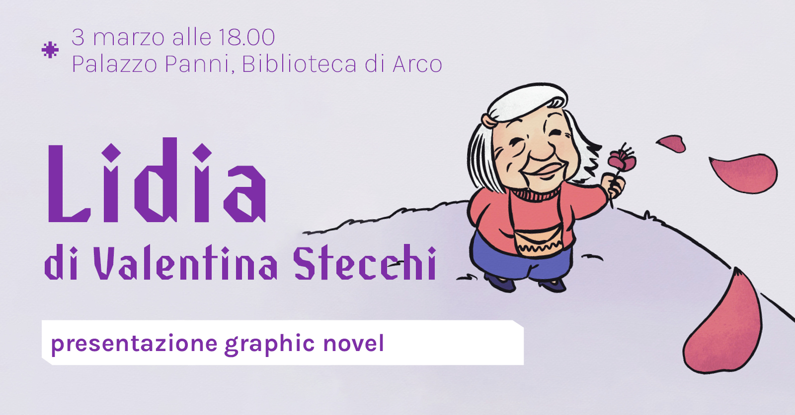 Domenica 3 marzo alle ore 18, presso Palazzo Panni ad Arco, l’associazione Alba Chiara APS propone insieme ad ANPI la presentazione del fumetto “Lidia” della disegnatrice Valentina Stecchi, dedicato a Lidia Menapace, per ri-scoprire attraverso un immaginario dialogo intergenerazionale, una delle protagoniste della Resistenza italiana e dell’antifascismo.