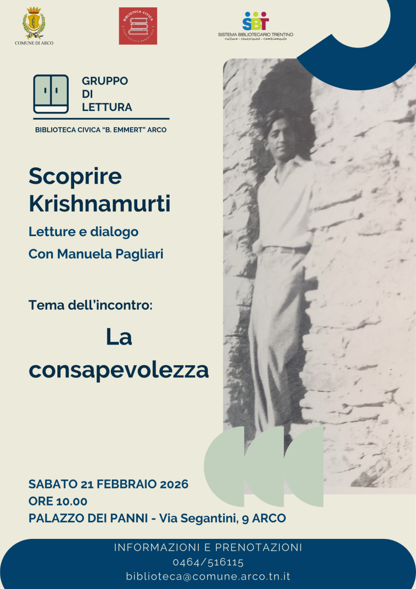 In questo incontro di febbraio si cercherà di approfondire cosa significa essere consapevoli attraverso i testi del filosofo Krishnamurti.