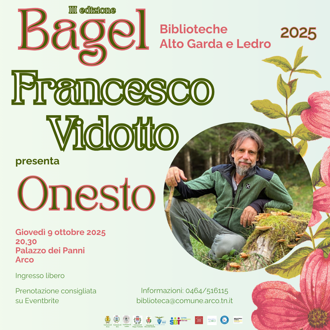 Il primo appuntamento è il 9 ottobre con Francesco Vidotto, che presenta presso la Biblioteca di Arco il suo libro “Onesto”.