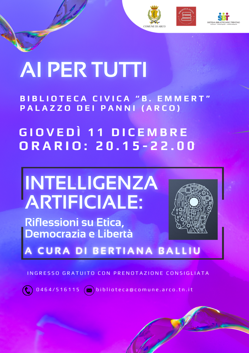 Gli incontri sono aperti a tutti e gratuiti ma consigliamo la prenotazione chiamando il numero 0464/516115 o scrivendo a biblioteca@comune.arco.tn.it
