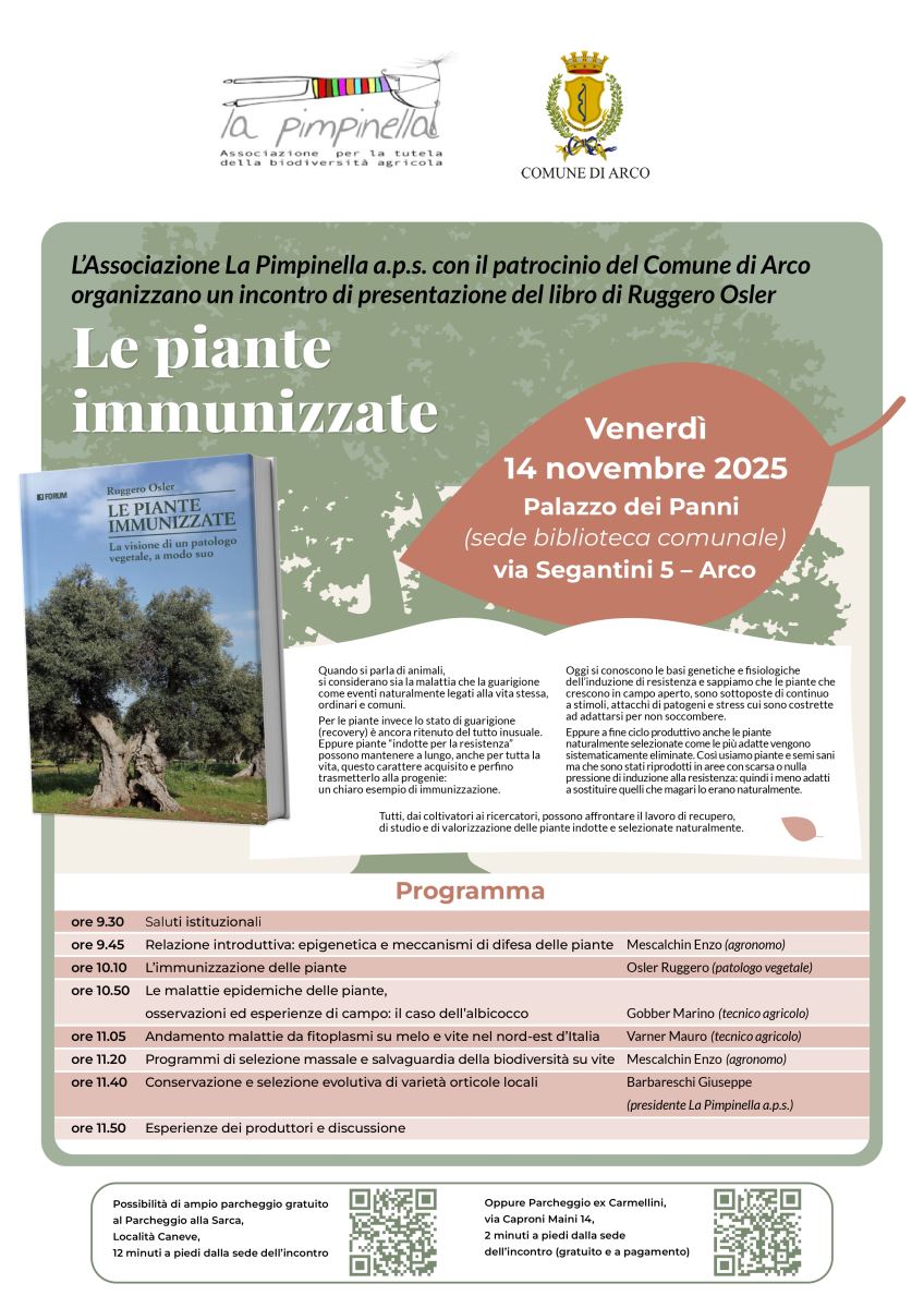 La conferenza è organizzata dall'associazione La Pimpinella e dall'ufficio Ambiente del Comune di Arco.