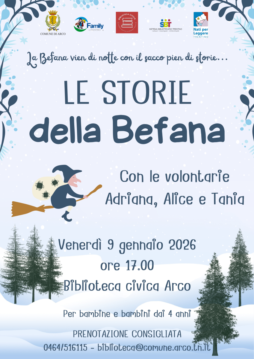 E la Befana quest'anno ha portato un sacco pieno zeppo di storie che ascolteremo grazie alla bravura e alla simpatia delle volontarie Nati per Leggere Trentino, Adriana, Alice e Tania.