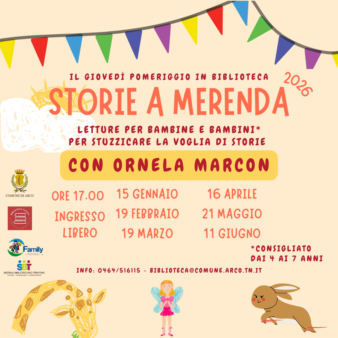Riprendono le storie a merenda con Ornela Marcon: giovedì 15 gennaio alle 17.00 vi aspettiamo in biblioteca per tante belle storie invernali! La proposta è per bambine e bambini dai 4 ai 7 anni, ma i grandi (genitori, nonni, zii...) sono i benvenuti perchè è sempre bello farsi leggere una storia no? L'ingresso è libero.