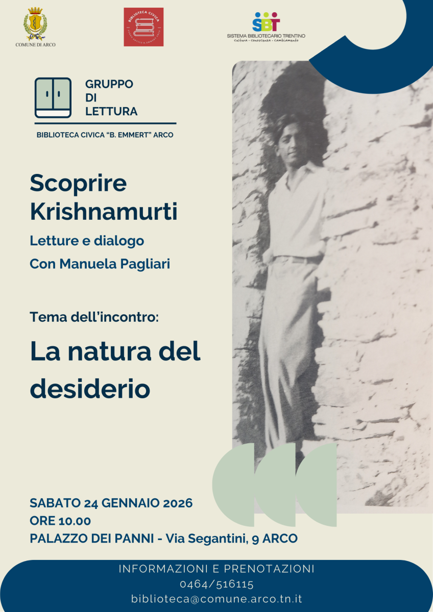 In questo incontro di gennaio analizzeremo la natura del desiderio attraverso i testi del filosofo Krishnamurti.