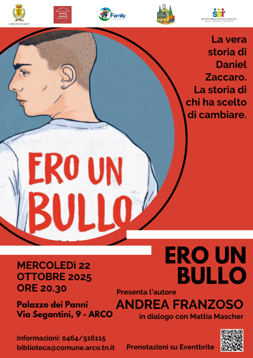 La serata è realizzata in collaborazione con l'Istituto Comprensivo di Arco; Andrea Franzoso incontrerà le classi seconde della Scuola media "Niccolò d'Arco" la mattina di giovedì 23 ottobre 2025, a scuola.