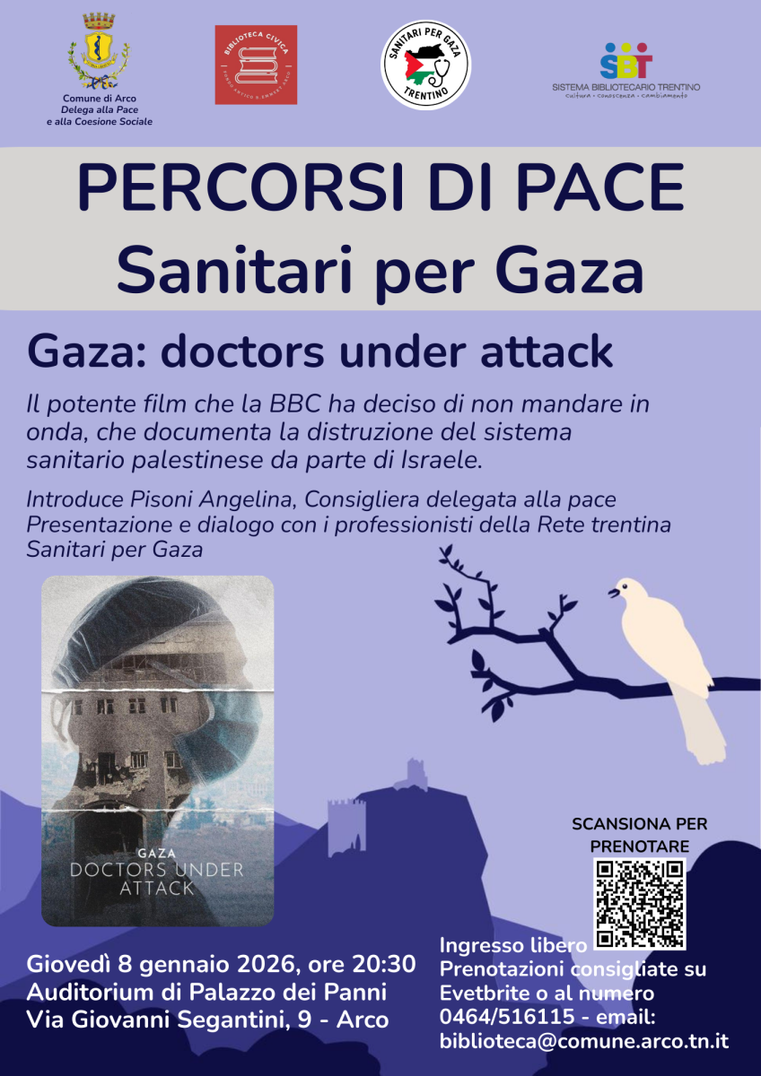 La rete trentina Sanitari per Gaza e il Comune di Arco propongono la visione del film "Gaza: doctors under attack".