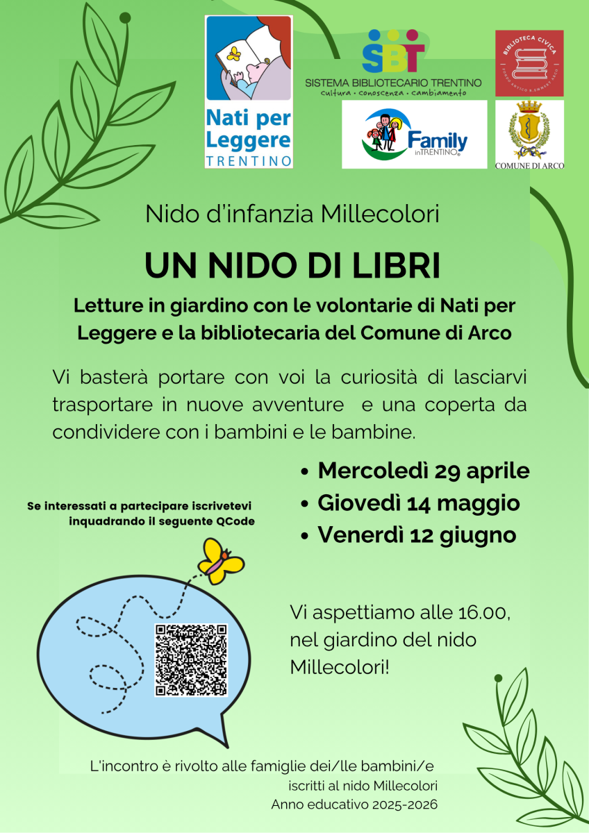 L'incontro è rivolto alle famiglie dei bambini e delle bambine iscritti al nido Millecolori di Arco. Per partecipare iscrivetevi a questo link: CLICCA QUI